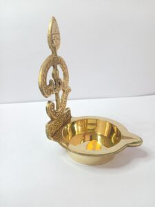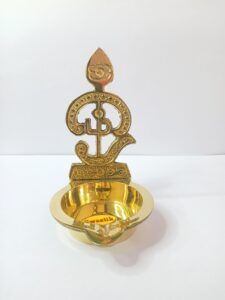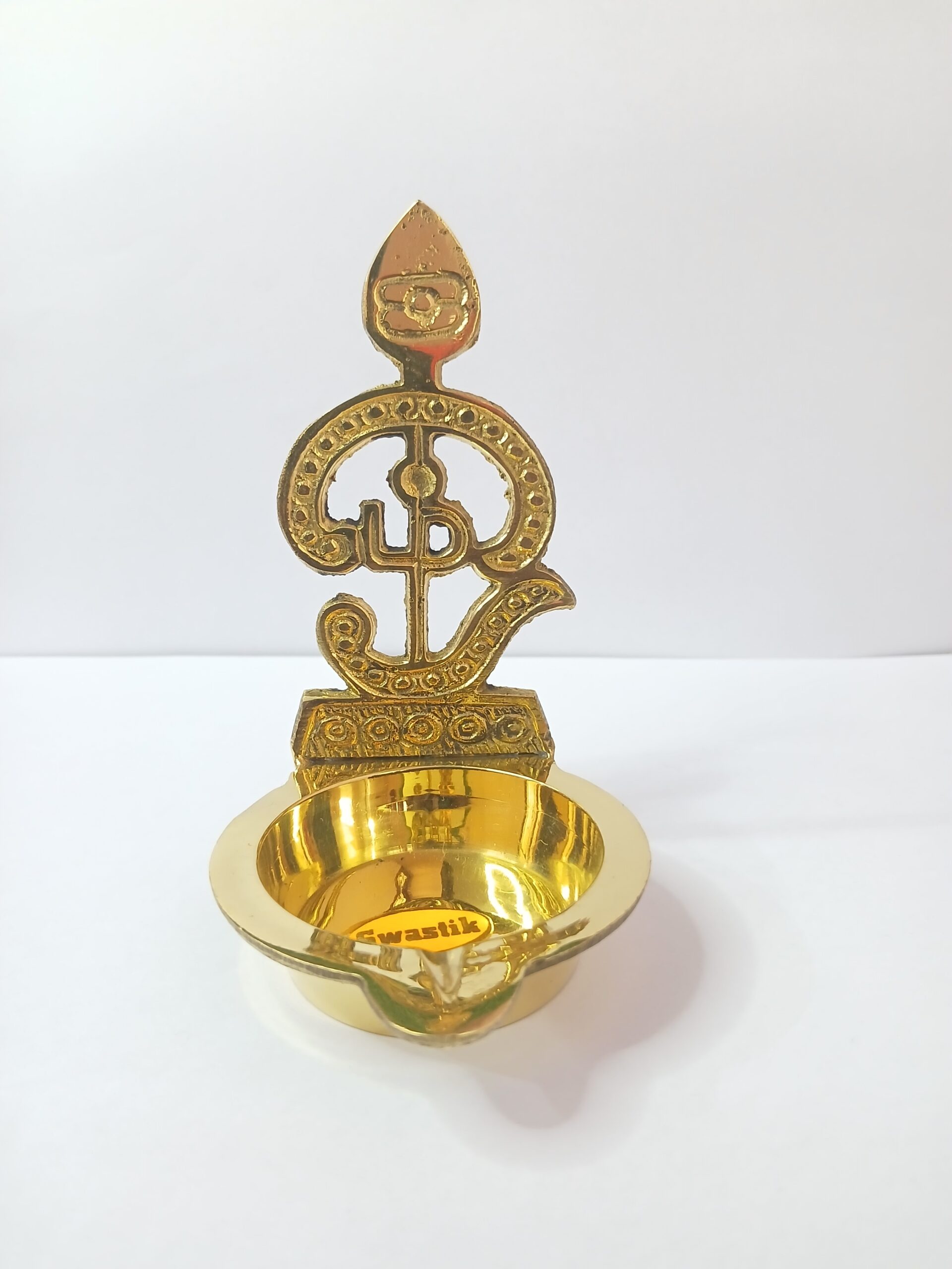 Brass Om Vel Vilakku, which is a traditional oil lamp used in Hindu rituals.