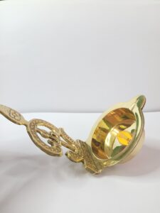 - It is crafted from brass and features the sacred “Om” symbol and the “Vel,” a divine weapon associated with Lord Murugan.
