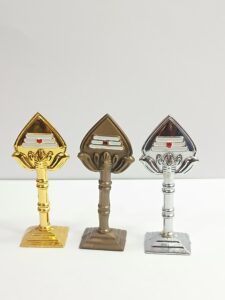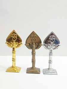 Design: It features a traditional design with the forehead sign of Lord Muruga on the top face and an integrated sturdy stand for stable display.Usage:Â It is commonly used in daily pooja rituals, offering prayers, and invoking blessings from Lord Murugan, suitable for home or office pooja shelves.![]()