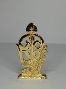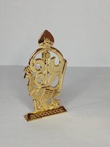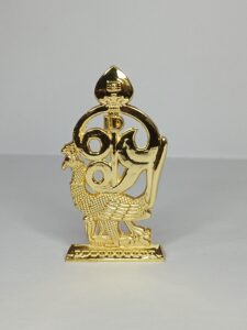 - Symbolism: It combines the sacred “Om” symbol, Lord Murugan’s divine weapon “Vel” (spear), and his mount, the peacock.