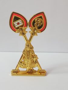 - Design: The idol features a golden finish and incorporates two crossed Vel symbols, with the ‘Om’ symbol on one and a ‘Tilaka’ mark on the other, enhancing its spiritual significance.